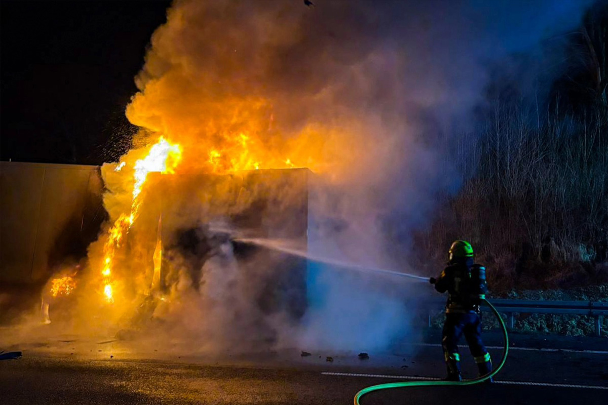 Während der Löscharbeiten war die Autobahn in Fahrtrichtung Nord voll gesperrt.
