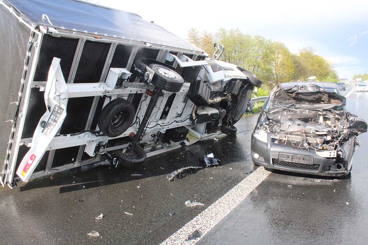 Zur Unfallaufnahme musste der rechte Fahrstreifen für ca. 1,5 Stunden gesperrt werden. Der Gesamtschaden dürfte ca. 45.000 Euro betragen.